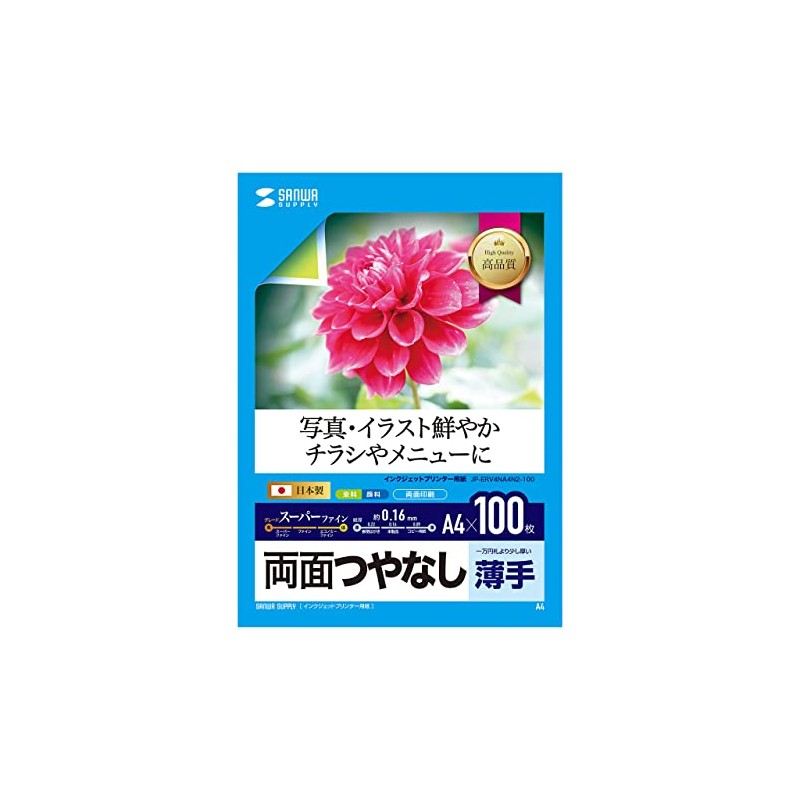 Sanwa Supply JP-ERV4NA4N2-100 Double-Sided Inkjet Paper A4 (Thin) Large Capacity Type