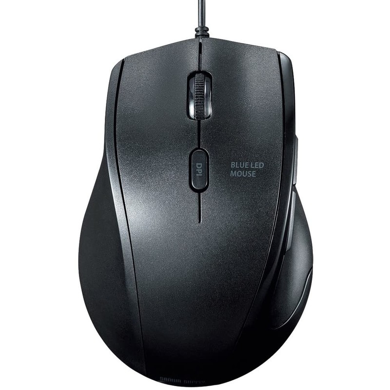 Sanwa Supply MA-BL165BK Quiet Wired Blue LED Mouse (for Left Hand), 5 Buttons, Back/Forward Buttons, 5 Buttons, 2400 dpi (4 Level Switching), Medium Size