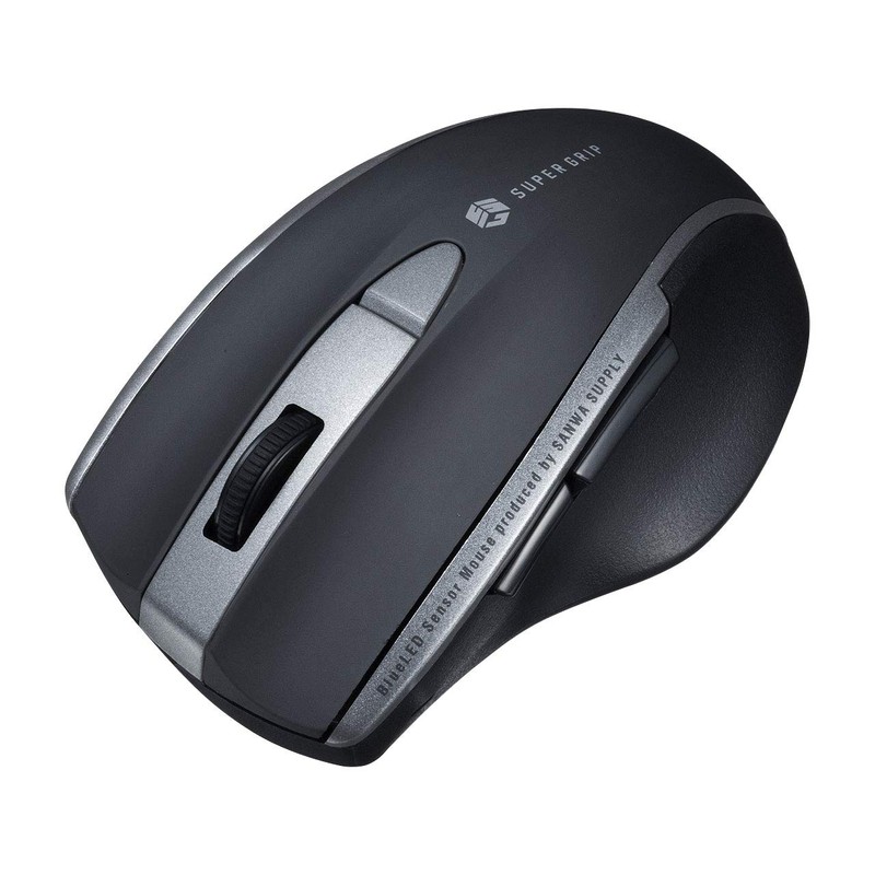 Sanwa Supply MA-BTBL167BK Bluetooth Mouse, Silent, Blue LED, 5 Buttons (Back/Forward Buttons), Medium, Black