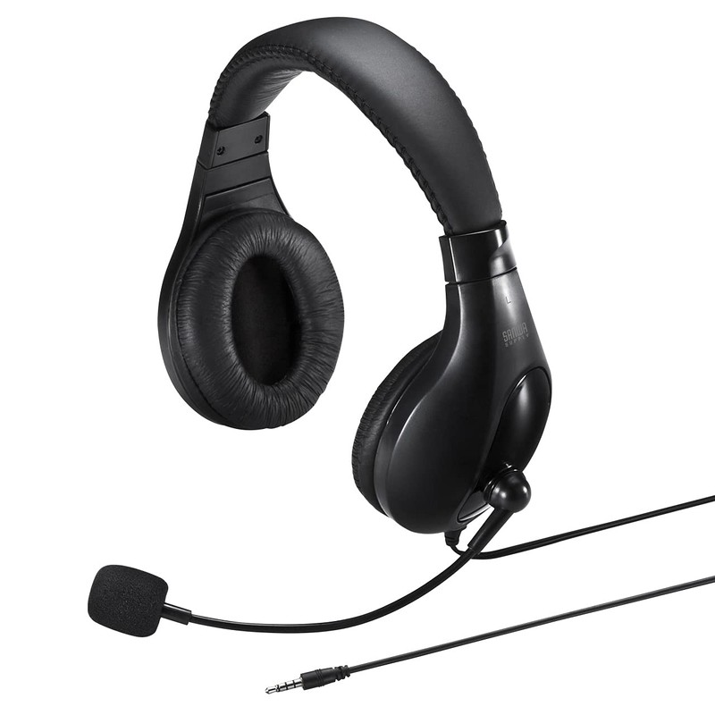 Sanwa Supply MM-HS401BK Headset 3.5mm Mini Plug (4 Poles), Binaural Type, Large, Black