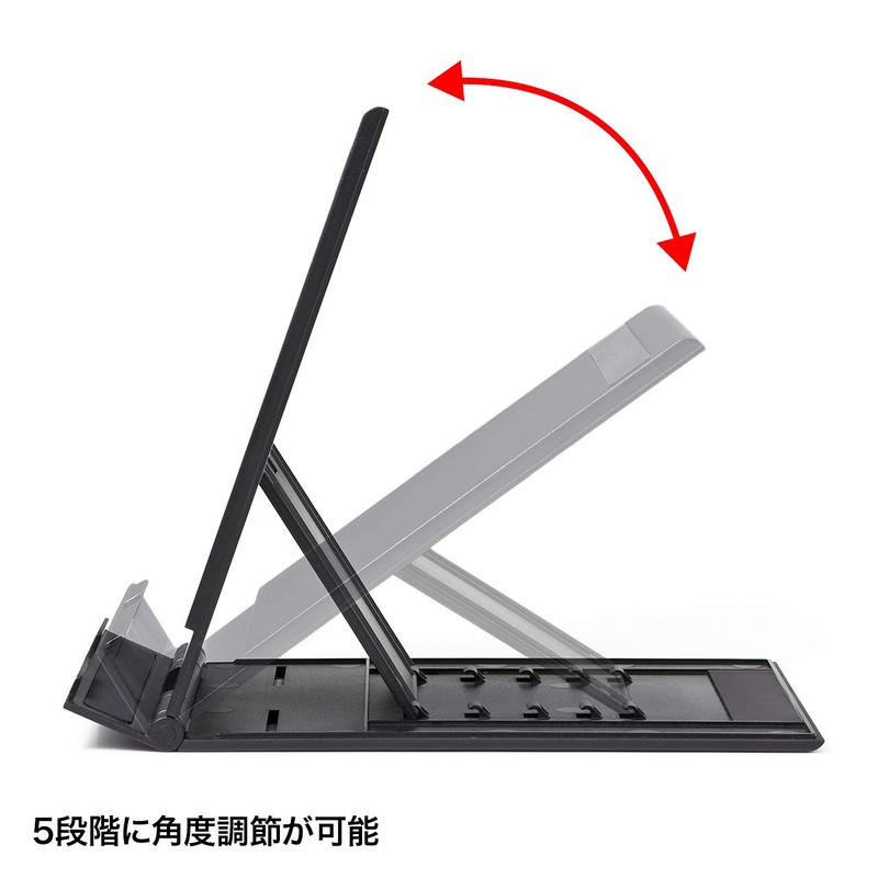 Sanwa Supply PDA-STN11BK Mobile Tablet Stand, 5 Adjustable Angles, Foldable, Thin, Black
