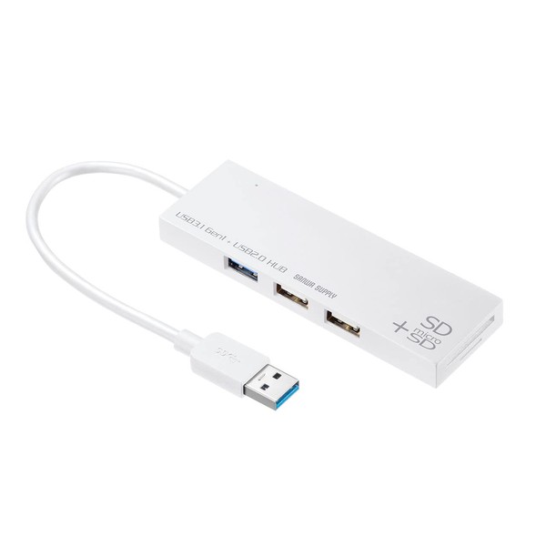 Sanwa Supply USB 3.1+2.0 Combo Hub with Card Reader (White) USB-3HC316WN