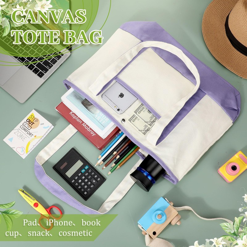 - Enjoy the DIY Time: these canvas tote bags with handles adopt the color splicing design, simple and elegant, each has a wide range of blank area, ideal for you to paint, embroider, do sublimation or print meaningful patterns and words, to create your own personalized bags and send to others as lovely gifts