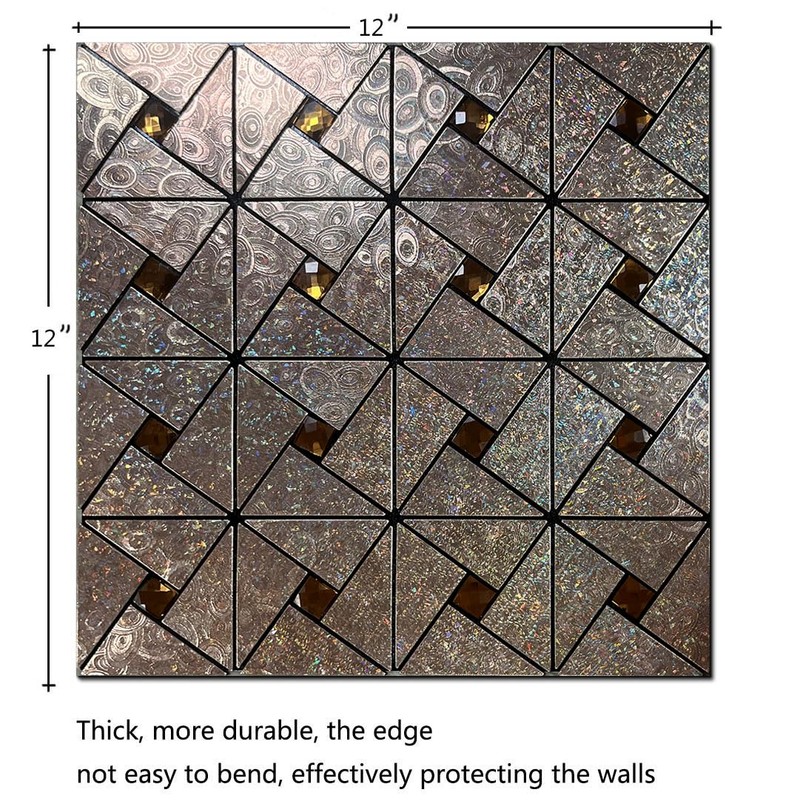 Suitable for decoration for kitchen backsplash, bedroom walls, bathroom backsplash, laundry room, washbasin etc. The surface of the tiles is aluminum, stainless steel, scratch-resistant, easy to clean, and a damp cloth is enough to remove oil.