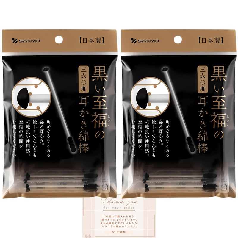 Sanyo Black Bliss 360° Ear Pick Swabs, 100 Pieces (50 Pieces x 2 Bags)
