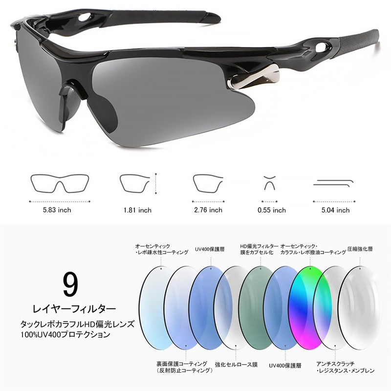 - [UV400 / Polarized Lenses] Polarized lenses cut 99% of harmful light such as UVA, UVB, and UVC rays and eliminate reflected and scattered light, making your scenery more vivid and softer. Only visible light is allowed to pass through. Protects your eyes from UV rays and irregular reflections. It provides clear vision by effectively cutting glass and glare during snowy weather, rainy weather, and cloudy days