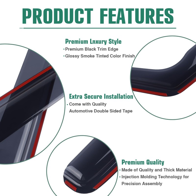 - ๐๐๐จ๐ฟ๐ธ๐ถ๐ป๐ด ๐ฃ๐ฟ๐ถ๐ป๐ฐ๐ถ๐ฝ๐น๐ฒ:Side window deflectors alter the air flow in your vehicle while keeping glare and rain out.It allows your vehicle to be well ventilated and reduces the need to use air conditioning.