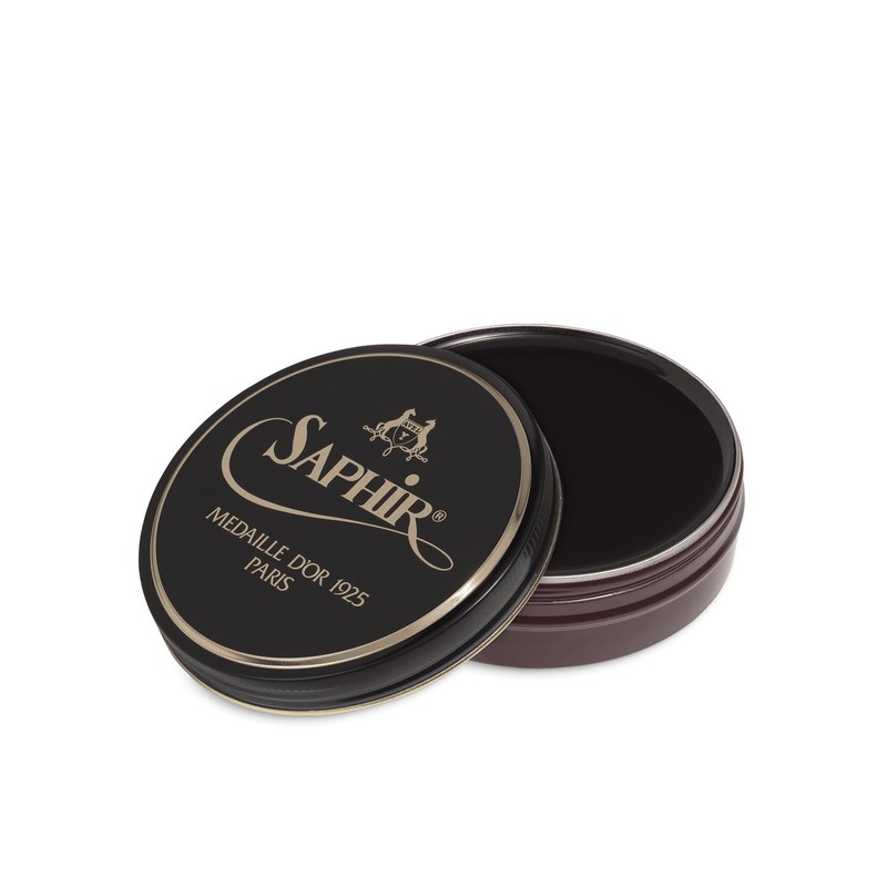 - WAX SHOE POLISH: Saphir Medaille d’Or Pate de Luxe Wax Polish contains a combination of waxes providing nourishment, protection, restored luster and an effortlessly shiny finish.