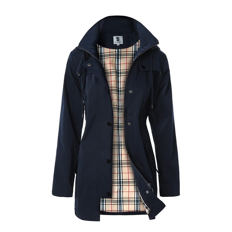 - [Design]: Lightweight long raincoat / Chic plaid cotton lining / Adjustable drawstring waist & hood / Stylish zipper and snaps of high quality