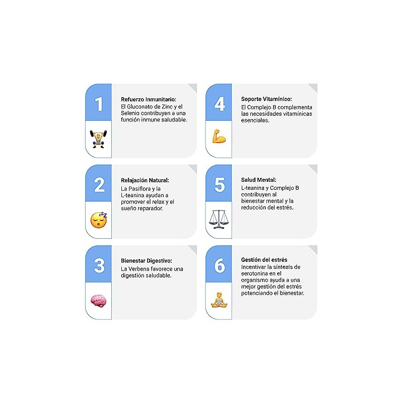 • Acerca de este artículo 馃 BENEFICIOS PARA EL CEREBRO Nuestro suplemento está compuesto ingredientes que potencian la creación de neurotransmisores asociados con la gestión del estrés y el descanso. 馃敩 LA FÓRMULA La unión de la vanguardia de la neurociencia biomolecular con la tradición herbal ayurvédica y china para diseñar un compuesto 100% natural formado por plantas, vitaminas, minerales y aminoácidos que ayudan a POTENCIAR LAS FUNCIONES DEL CEREBRO 馃┖ FORMULADA POR MÉDICOS ACREDITADOS Producto diseñado por el equipo del Doctor Carlos Alvear (Cirujano por la Facultad de Medicina de la Universidad Anáhuac y capacitación clínica en la Facultad de Medicina de Harvard). 馃尡 CERTIFICADOS DE CALIDAD Y ORIGEN DEL PRODUCTO Todo los componentes de la fórmula han pasado estrictos controles de calidad a disposición del cliente que certifican el origen y la calidad de los componentes. 鉁岋笍 FABRICADO EN MÉXICO Producto elaborado en laboratorios nacionales Neurosoma S.A.. Cultivo propio de plantas en finca orgánica. 馃啌 LIBRES DE LACTOSA Y GLUTEN Nuestro producto se ha analizado y certificado como libre de lactosa y gluten. 馃幆 SIN EFECTOS SECUNDARIOS A diferencia de los medicamentos donde se introducen moléculas exógenas (externas a nuestro organismo) que a menudo inducen problemáticas secundarias a medio