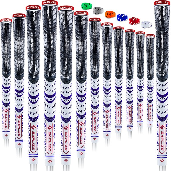 SAPLIZE 13 Golf Grips, Standard, White, All Weather Multi Compound Hybrid Golf Club Grips