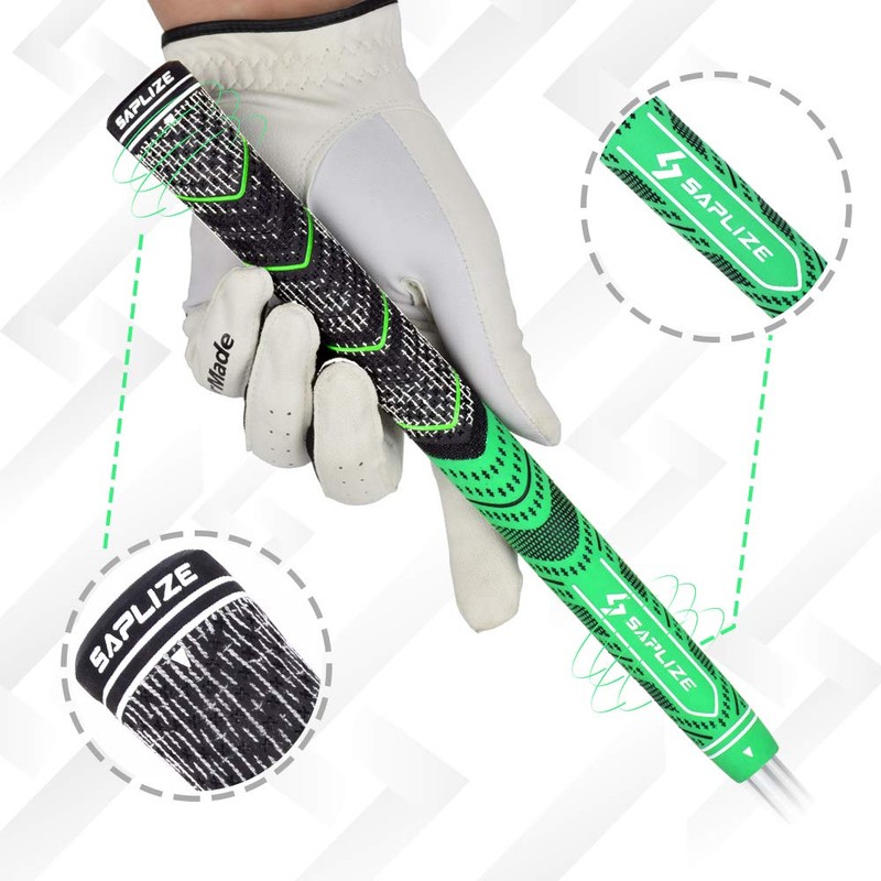 SAPLIZE Golf Grips Set of 13 Standard Size with Complete Regripping Kits All Weather Compound Hybrid Rubber Golf Club Grips Green