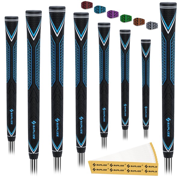 SAPLIZE High Performance Golf Rubber Grips, High Shock Absorption, Non Slip, 8 Grips, Medium, Blue