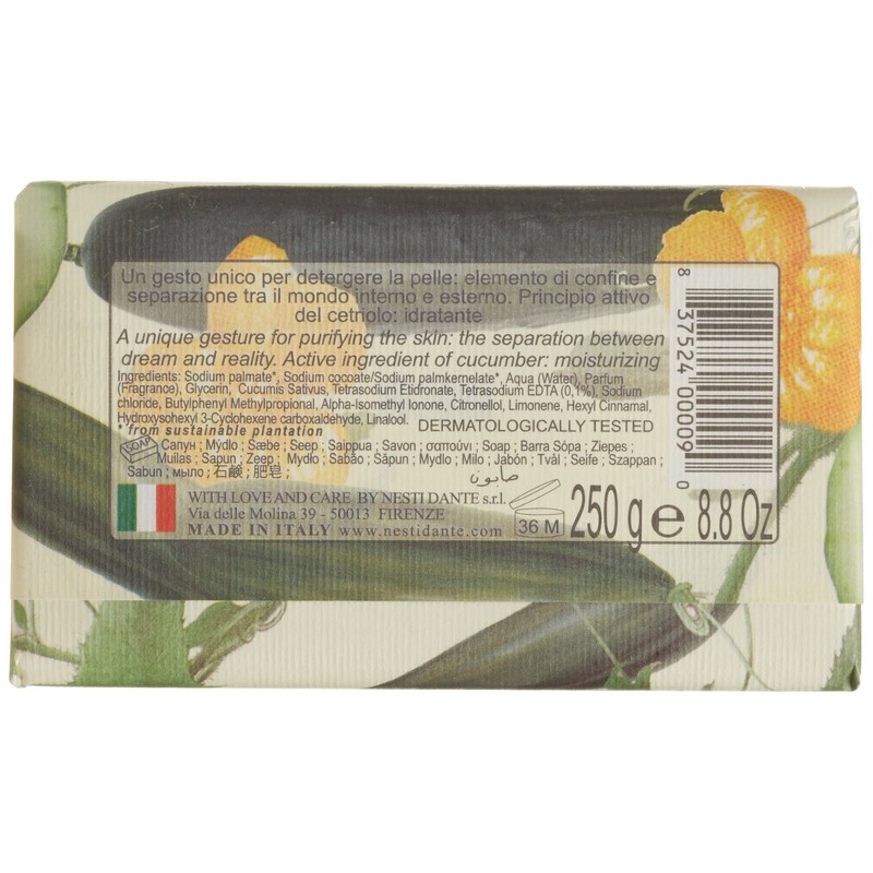 Saponeria Nesti Firenze: Cucumber Soap with Active Ingredient, "Horto Botanico" Line 8.8 Ounces (250g) Packages (Pack of 3) [ Italian Import ]