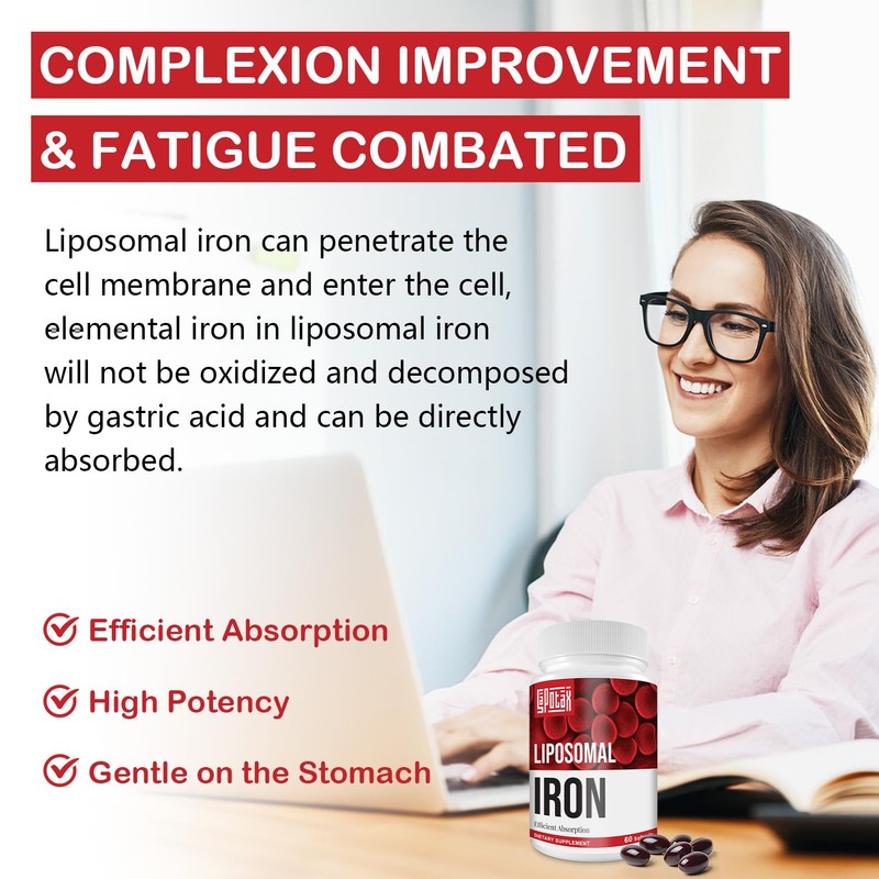 - Enhanced Absorption Formulation: Iron supplement is designed for high efficiency and based on liposomal technology, absorption of liposomal gentle iron is 3.5 times higher than ordinary iron pill, 4.1 times higher than ferric gluconate,2.7 times higher than iron sulfate, and 5 times higher than ferrous fumarate.Therefore the liposomal iron for iron deficiency is easily absorbed through the cell membrane getting more iron into your cells making it to be perfect iron supplements.