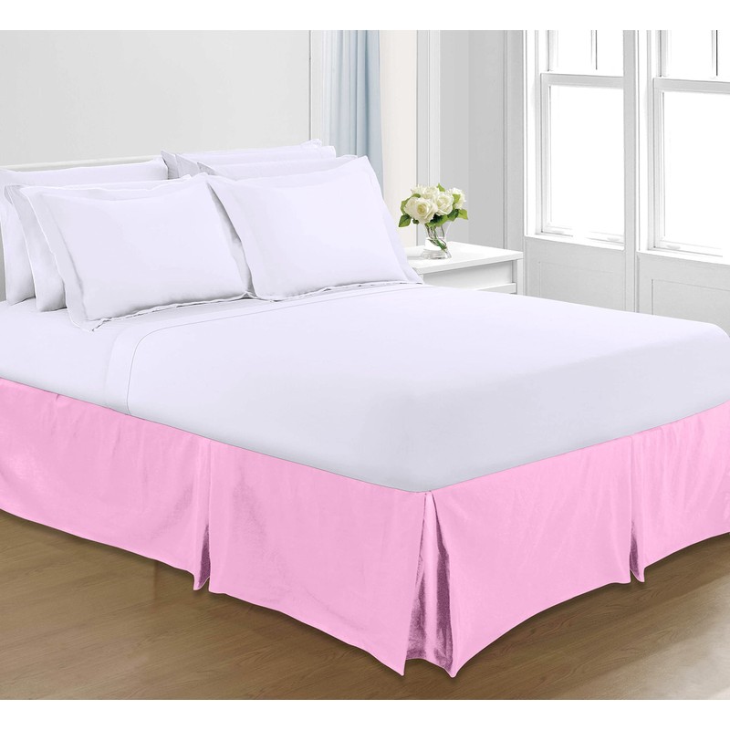 Sapphire Collection PLAIN DYED POLY COTTON PLEATED PLATFORM BASE VALANCE SHEETS (Single, Pink)