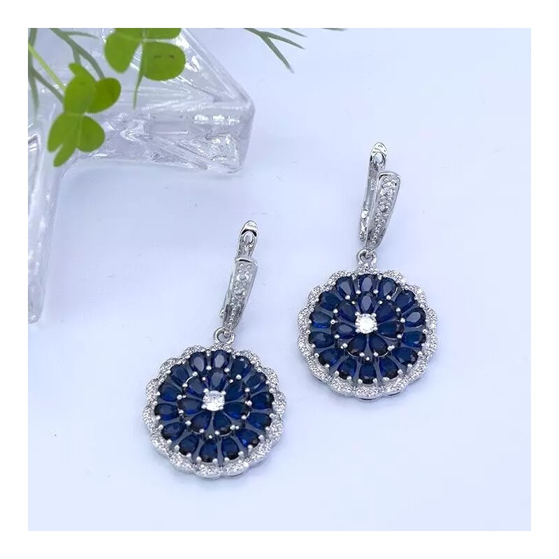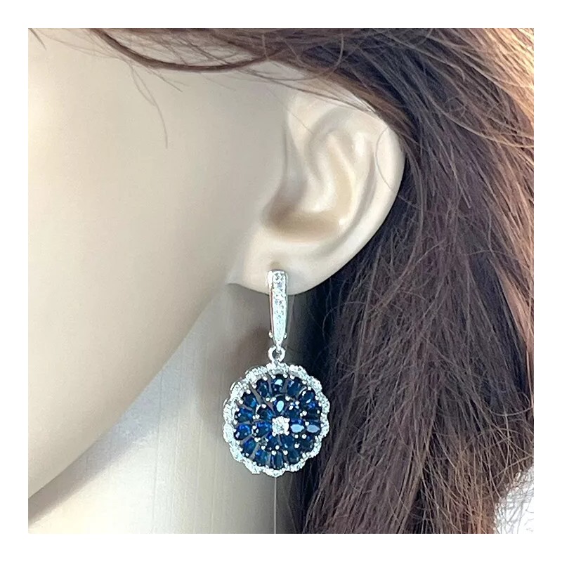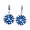Sapphire Rhodium Plated with Simulated Sapphire & Cubic Zirconia Drop Hoop Earrings