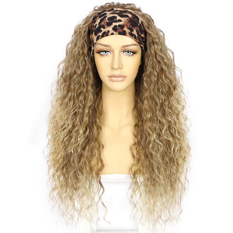 Sapphirewigs Blonde Curly Headband Wig Long Ombre Synthetic Wig Loose Water Wave Headband Wigs for Women Glueless 150% Density 66 cm