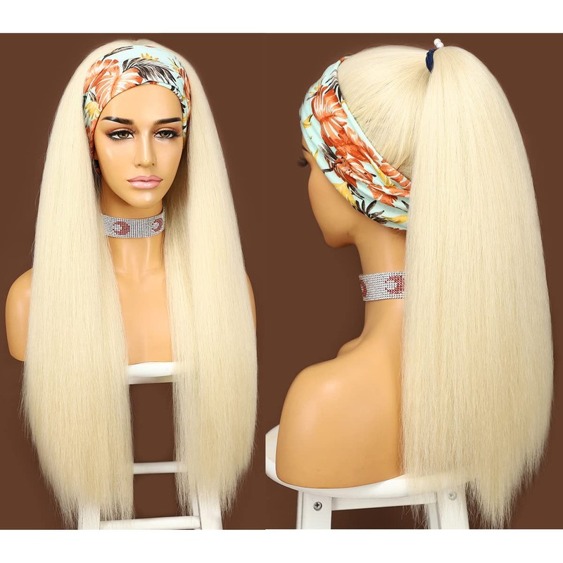 Sapphirewigs Light Yaki Straight Hair Women's Headband Wig 613 Blonde Synthetic Headband Wig Heat Resistant Wig 26 Inches