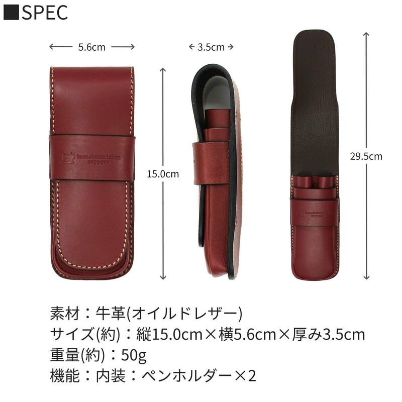- Material: Cowhide leather (oiled leather), Size (approximate): Height 5.9 x Width 2.2 x Thickness 1.4 inches (15.0 x 5.6 x 3.5 cm); Weight (approximate): 1.8 oz (50 g); Features: Interior: Pen holder x 2