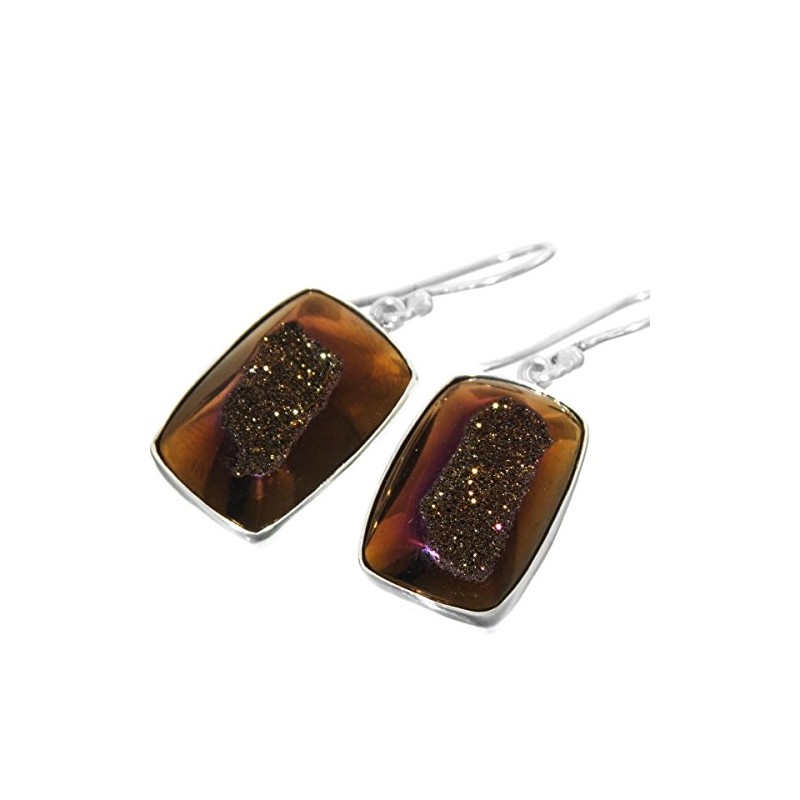 Saprkling Chocolate Brown Druzy 925 Sterling Silver Earrings, 7/8" p81759