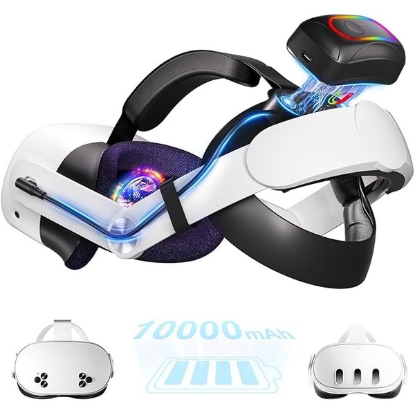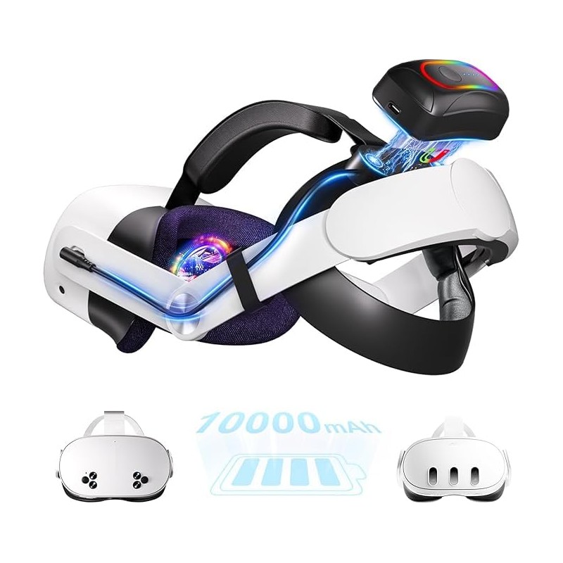 Experience seamless power and comfort with our magnetic battery head strap, compatible with Meta Quest 3/3S and Quest 2 via included adapter arms. Featuring a swappable 10000mAh magnetic battery, you can hot-swap power in seconds without removing the strap—just pop, snap, and play. With support for 18W fast charging, both the headset and battery charge in just 2.5 hours. The head strap adds 2 to 4 hours of additional playtime depending on usage, making it perfect for extended sessions. Soft memory foam cushions, a 360° fit dial, and a lightweight ergonomic structure reduce face pressure and enhance comfort. Vibrant RGB lights on the sides create an immersive atmosphere for your VR games. Whether you’re a Quest 3 owner looking for extended battery life, or a Quest 2 user seeking a modern upgrade, this strap offers the flexibility and innovation you need—all in one solution.