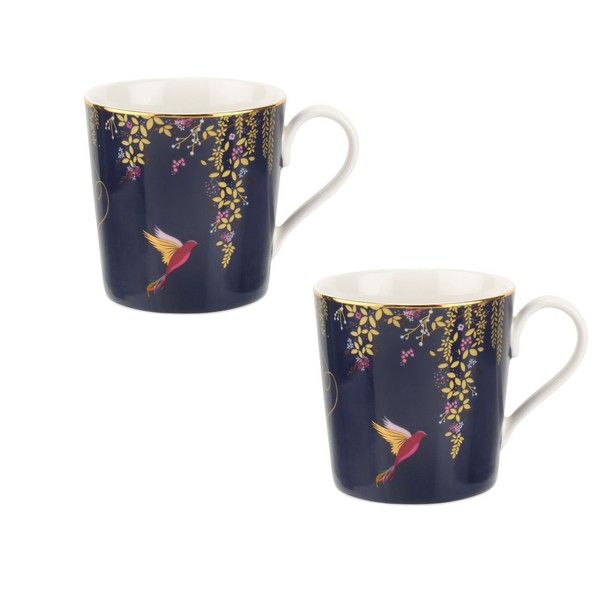 Sara Miller Chelsea Collection Mugs, Set of 2, Navy, Fine China, 340ml