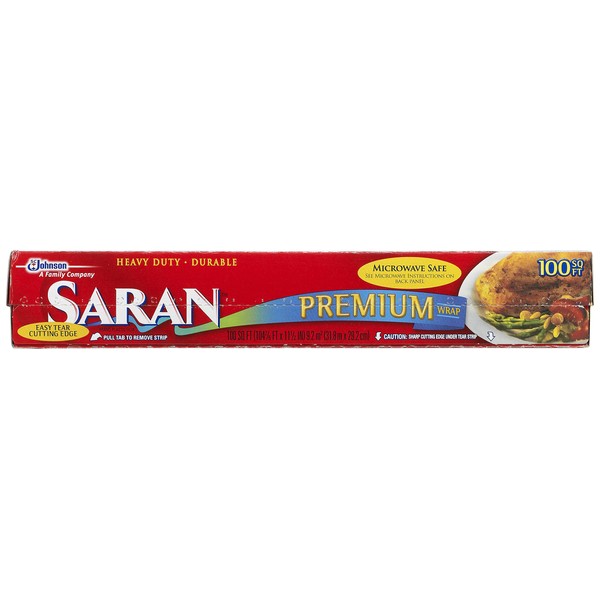 Saran premium plastic wrap can help you keep all your food fresh and healthy. From meats to fruits to the leftovers, it keeps everything fresh. The pack is free of chlorine. The wrap's special stretch and seal technology allows for easy covering and protection. Turning back one corner of the wrap helps vent excess steam.