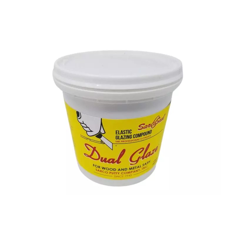 For glazing and bedding glass in both wood and metal sash and doors. Ready for use and for easy application under the knife and thumb. A modern glazing compound that remains elastic. Allowing for normal expansion and contraction. Adheres to all glazing surfaces, forming a permanent watertight bond between the glass and sash. After dual glaze has skinned, it may be painted with oil or latex paints.
