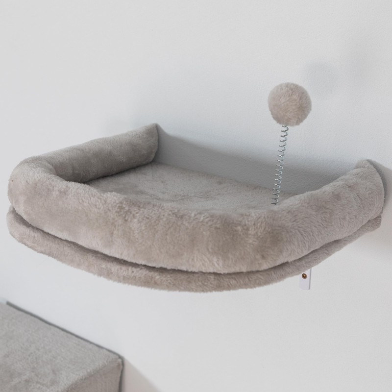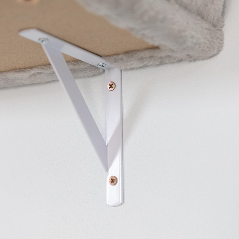 Made of durable cat-friendly particleboard and supported by triangular brackets, this cat furniture fits tightly to the wall and can hold up to 22 lbs. The creamy white soft plush fabric cover adds extra comfort to your feline friend.