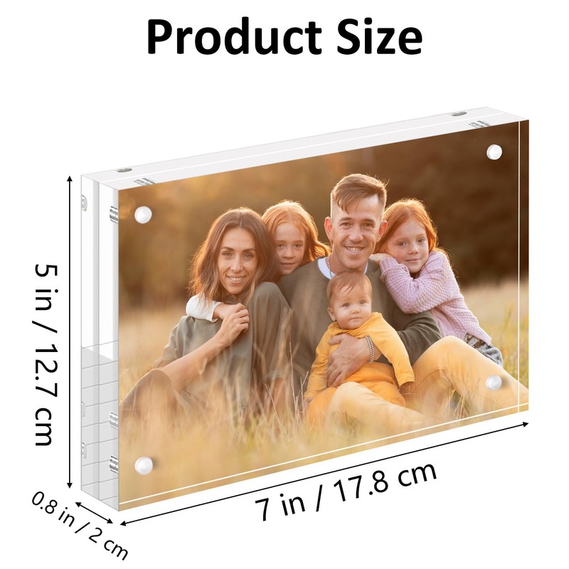 SAREAL 5x7 Magnetic Acrylic Frame - 20mm Ultra-Clear Double-Sided Display | 13x18 CM Frameless Floating Photo Frame | Premium Desktop Art Gallery