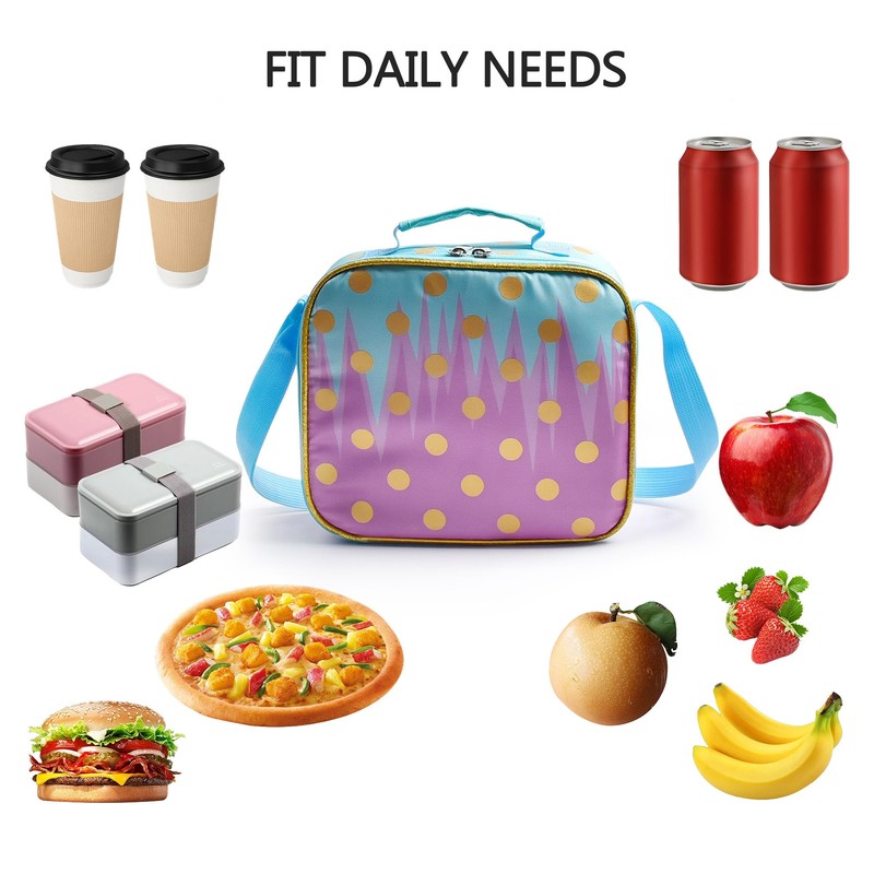 • 【Super Big】 Dimension 6.3" W x 10.6" L x 10.2" H , the maximum capacity is 12L. It can fit all of your food and drinks in an entire day, such as sandwich, pizza slices, spaghetti, salad, snacks, cola, milk and fruits.