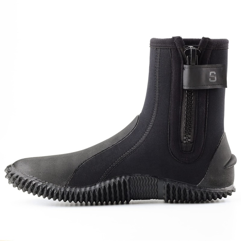 - 【PRODUCT FEATURE】5mm thickness neoprene with anti-slip, sturdy but flexible sole and rubberized protective armor provide excellent protection. Sarhlio diving boots are also featured excellent arch support and a heel air bubble that helps reduce stress.They're easy to get in and out of thanks to the easy-to-grip zipper and reinforced hook-and-loop closure,which ensure your boot remains closed while diving. The boots can handle waters with temperatures of 50°F to 62°F.