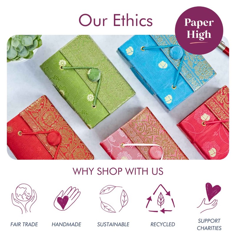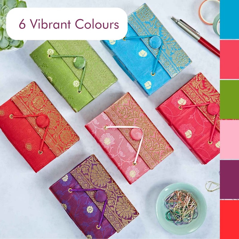 - Our beautiful collection of Fair Trade mini sari journals will add a joyous burst of colour to your writing.
