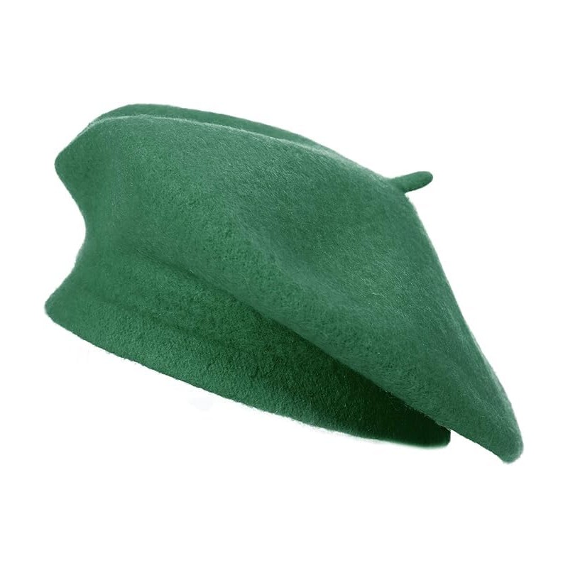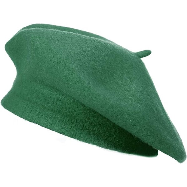 SARIMON Wool French Beret Hat for Men and Women in Plain Colours (Green)