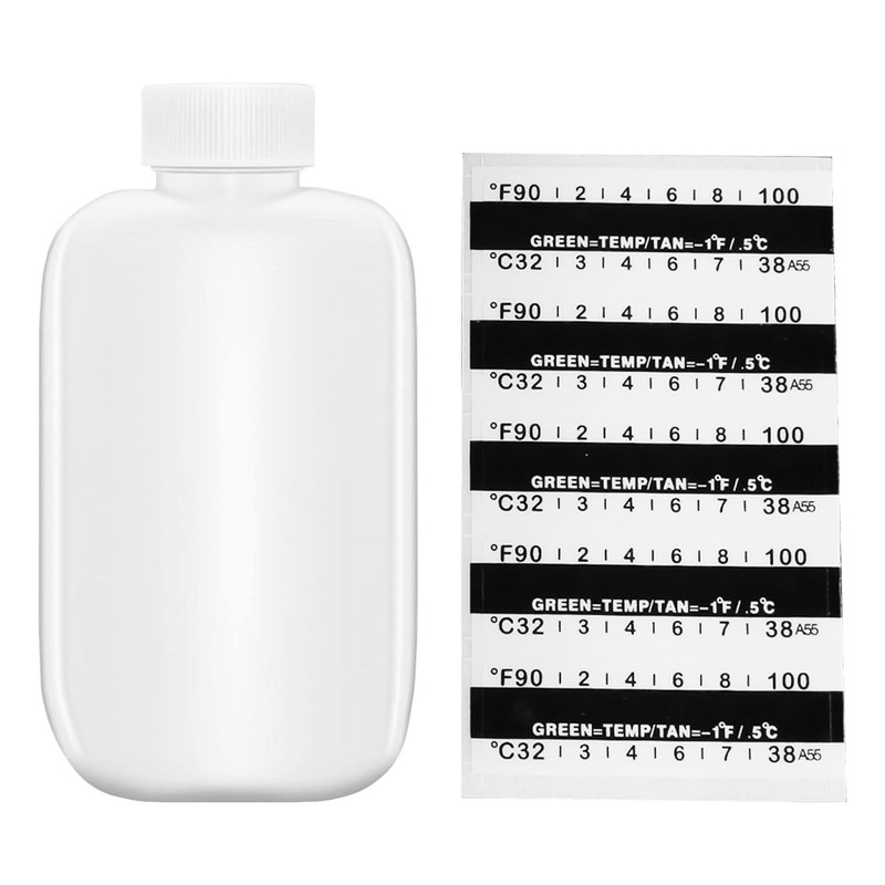 - Easy to operate, do not need a lot of time and energy, you just need to fill the bottle with clean urine, and then stick the temperature test strip on the side of the bottle to detect the temperature, which can appear with different eye catching color circles depend on the temperature, convenient for you to clearly understand the measurement