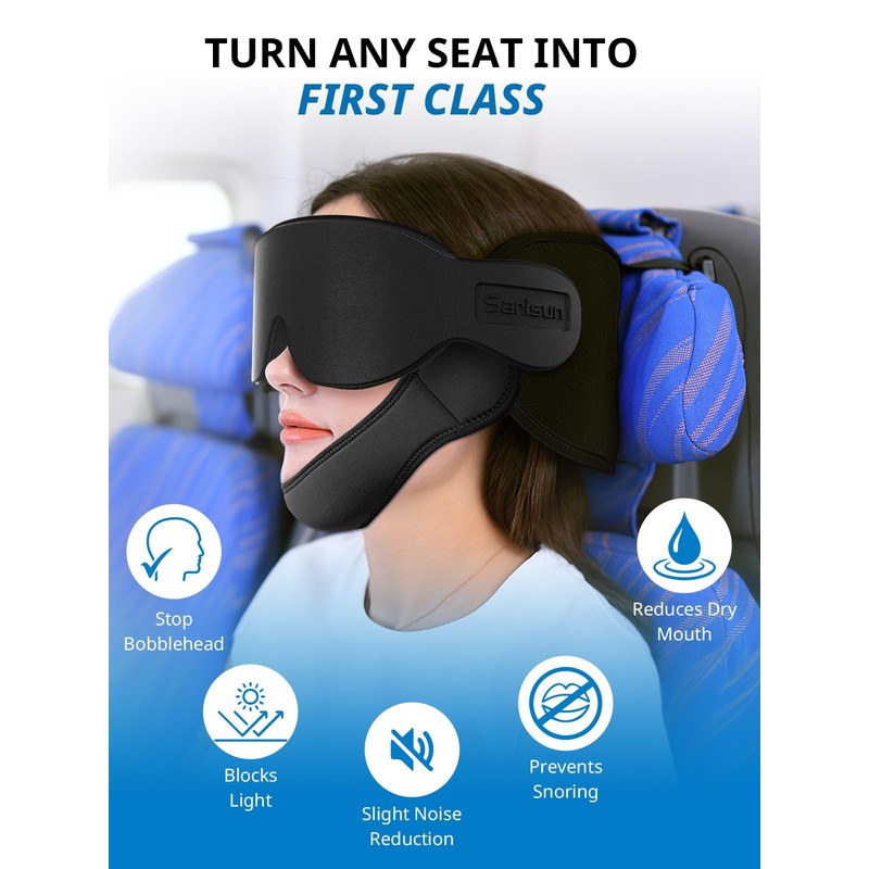 • Combo with Chin Strap: The SARISUN travel neck pillow comes with a chin strap and 3D eye mask. Say goodbye to restlessness during flights and enjoy worry-free sleep without head flopping or the embarrassment of sleeping with your mouth open.