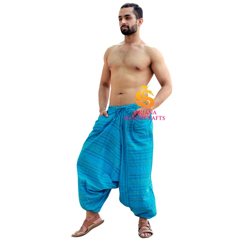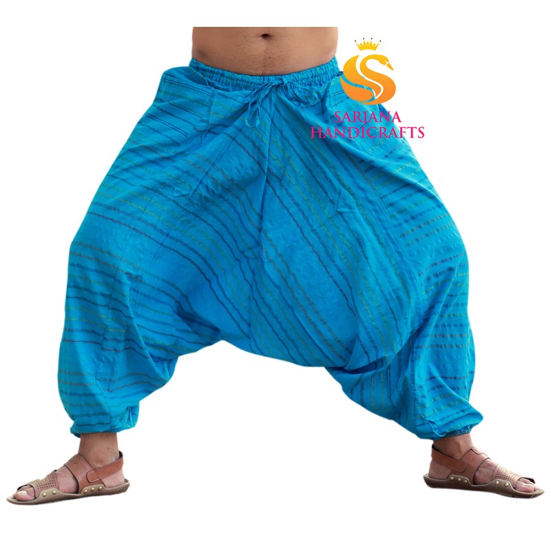 Sarjana Handicrafts Pantalones de algodón para hombre Harén Genie Dance Yoga Alibaba Hippie, Azul (Sky Blue), Talla única