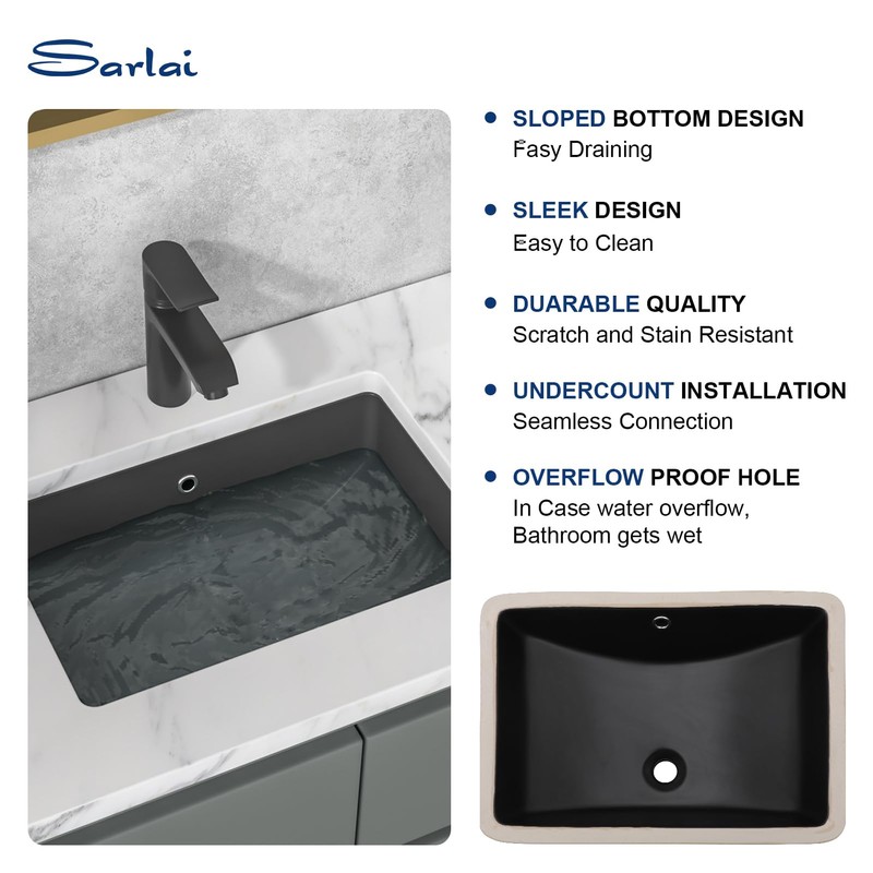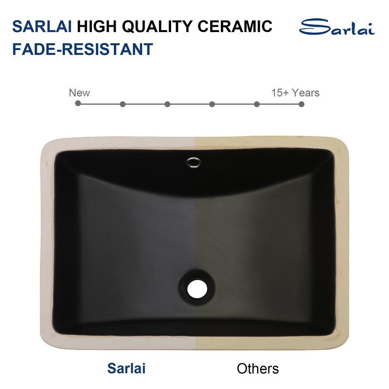 - Undermount Bathroom Sink: Sarlai Under-counter Vessel Sink is designed with beautiful curves, shape and glazed surface. Our rectangle white sinks are widely used in home bathroom, restaurant, Office building, school, Lavatory ,washroom or outdoor.