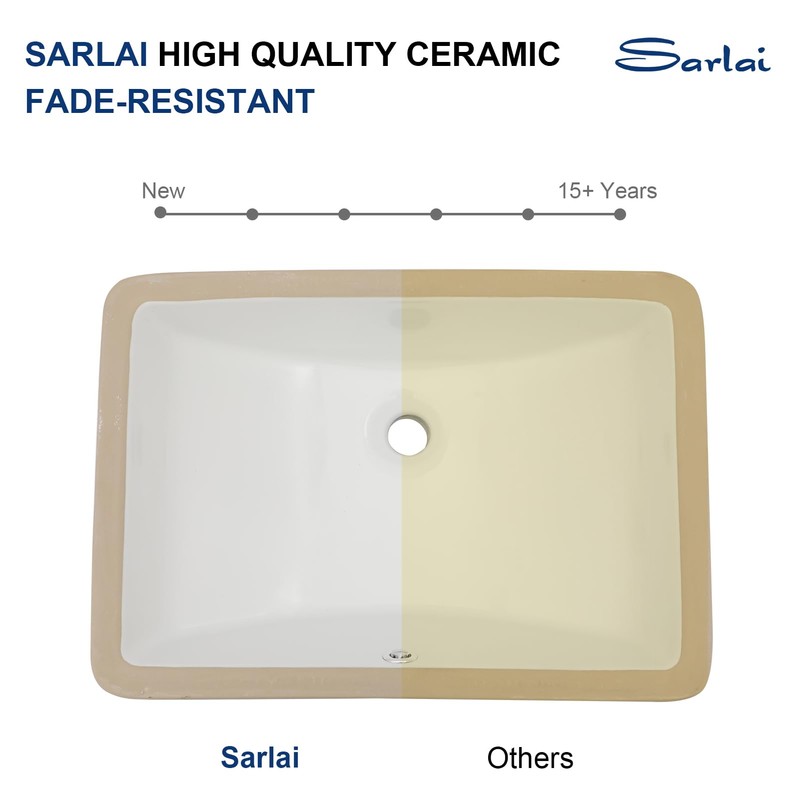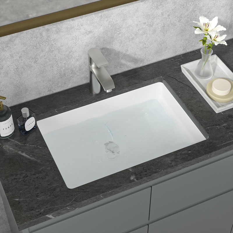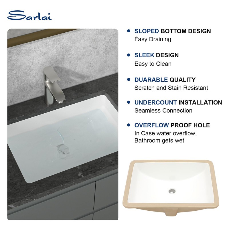 - Undermount Bathroom Sink: Sarlai Undermount Bathroom Sink is designed with beautiful curves, shape and glazed surface. Our rectangle white sinks are widely used in home bathroom, restaurant, Office building, school, Lavatory ,washroom or outdoor.