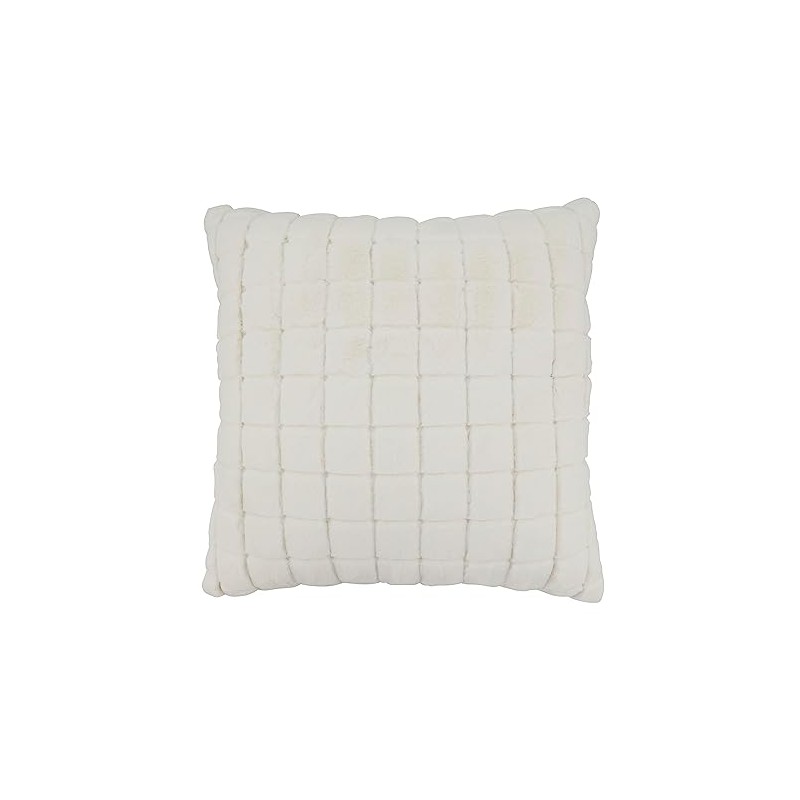SARO LIFESTYLE Furry Framework Grid Faux Rabbit Fur Throw Pillow Cover, Ivory...
