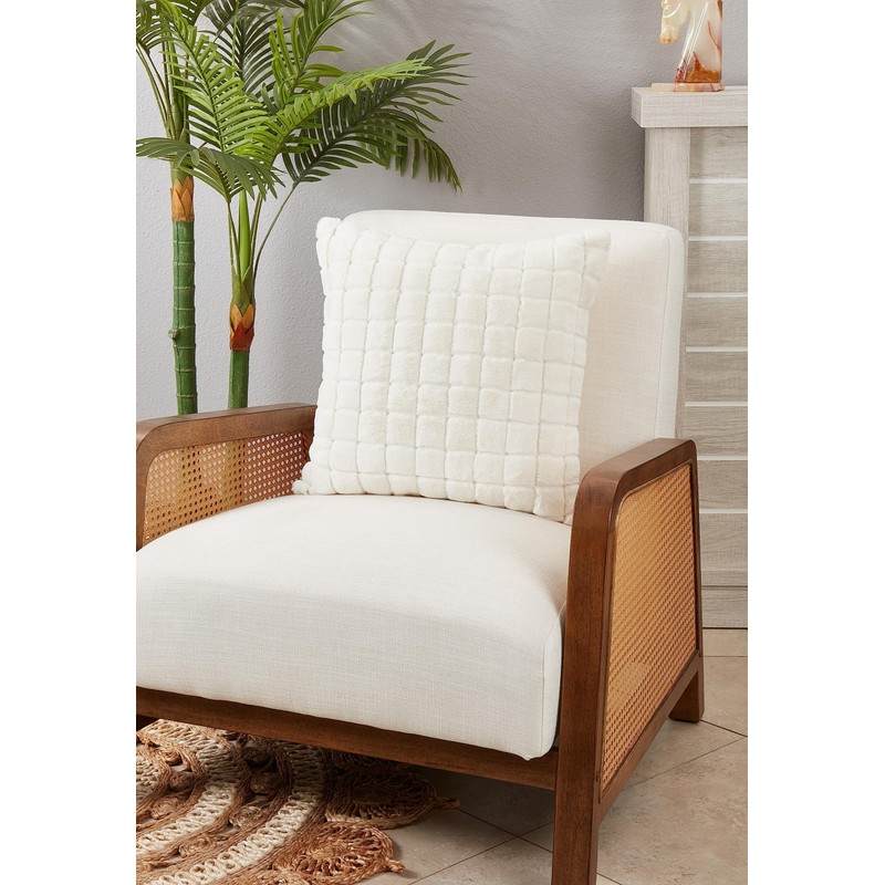SARO LIFESTYLE Furry Framework Grid Faux Rabbit Fur Throw Pillow Cover, Ivory, 18"