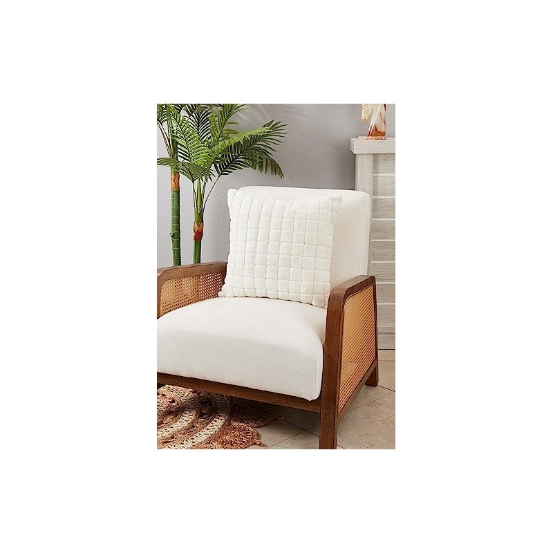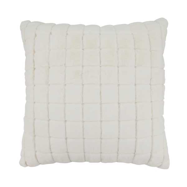 SARO LIFESTYLE Furry Framework Grid Faux Rabbit Fur Throw Pillow Cover, Ivory, 18"