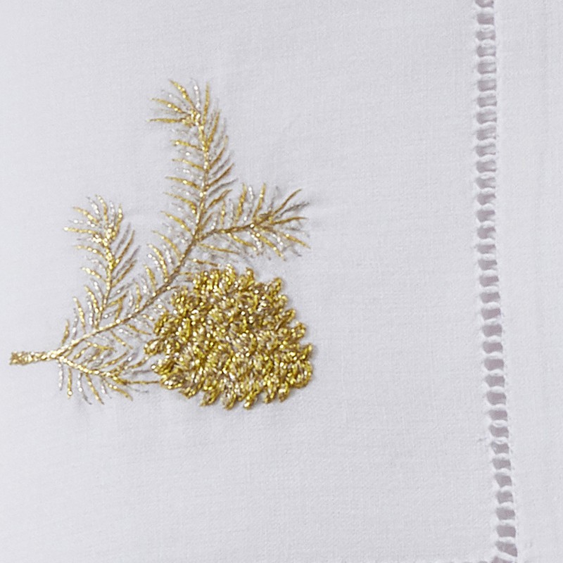 SARO LIFESTYLE NM130.W20S The Broderie Collection Embroidered Pine Cone Hemstitch Napkins (Set of 6) 20",