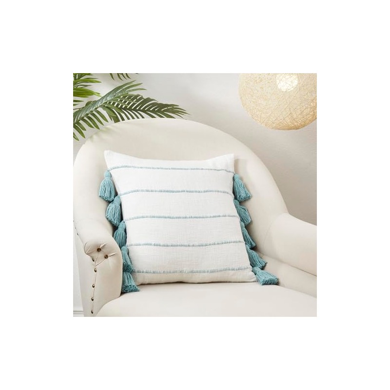 SARO LIFESTYLE Tassel Fantasy Stripe Poly Filled Throw Pillow