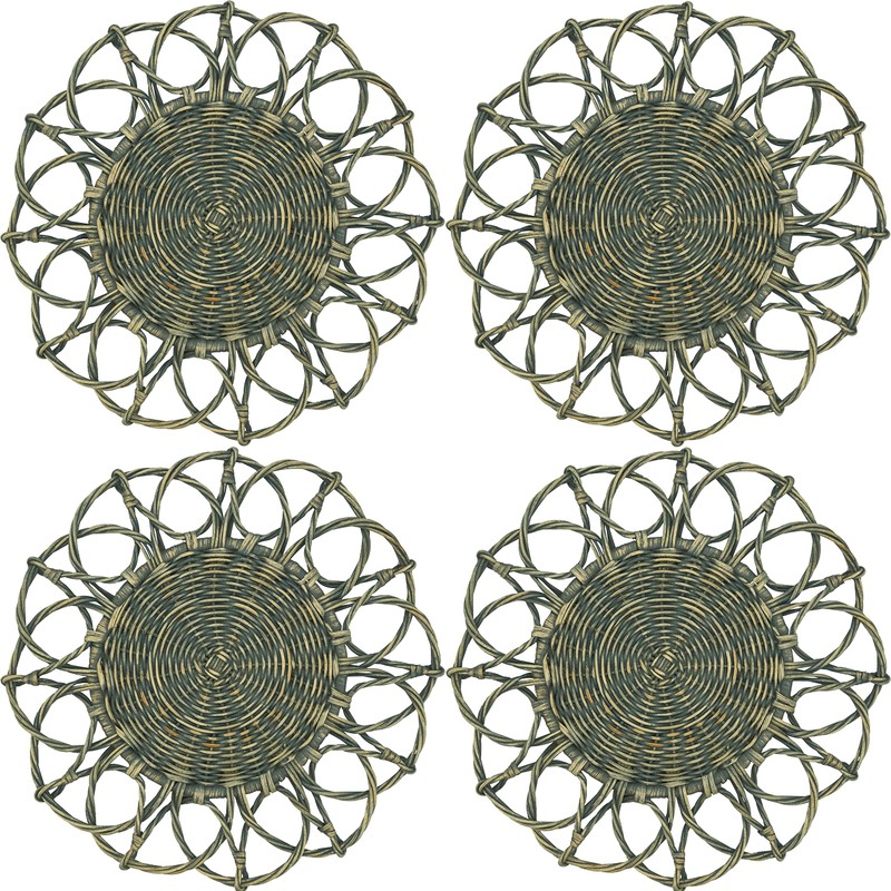 SARO LIFESTYLE Twisted Rattan Placemat (Set of 4), 15", Grey