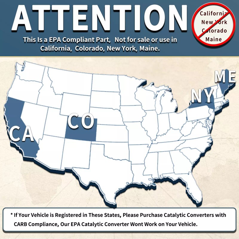 If your vehicle is registered in CA, NY, CO & ME, do not purchase this part.