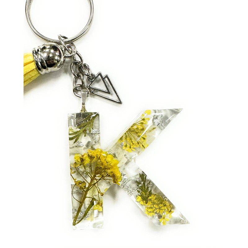 Sarray's Creations Alphabet Keychain, Resin Letter Pressed Flower Keychain, Handbag Accessory, Gift, Fashion Keychain, Handmade with Love