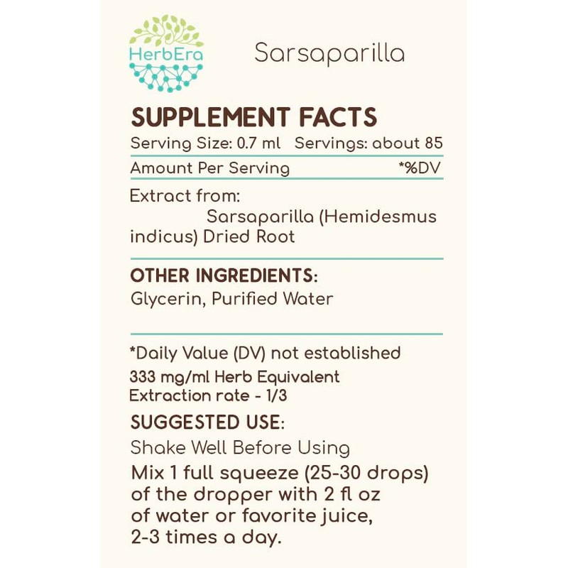 Sarsaparilla B60 Alcohol-Free Herbal Extract Tincture, Concentrated Liquid Drops Natural Sarsaparilla (Hemidesmus indicus) Dried Root (2 fl oz)