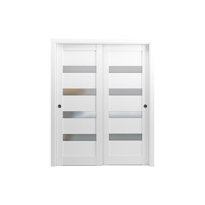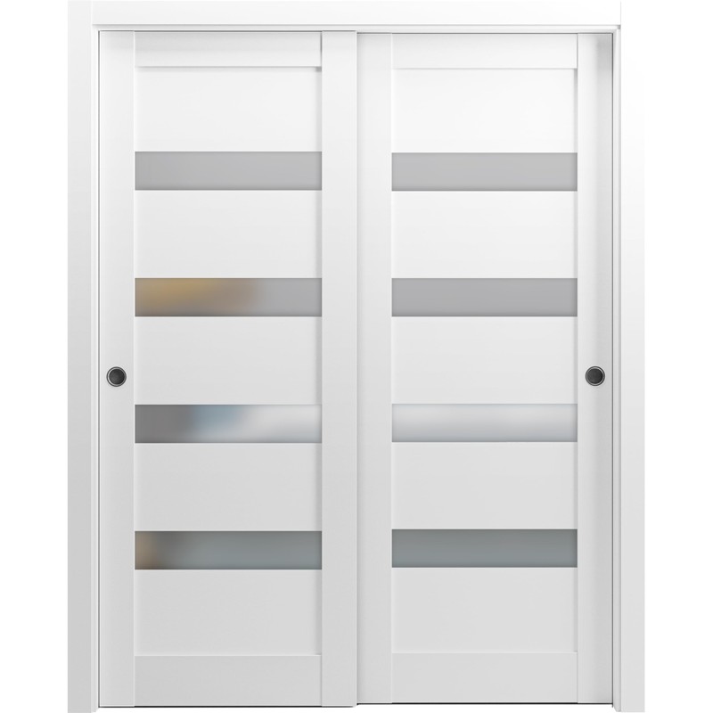 SARTODOORS Sliding Closet Bypass Doors | Quadro 4113 White Silk with Frosted Opaque Glass | Sample of Color